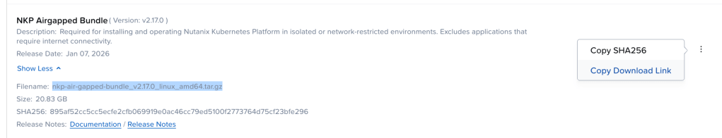 เข้าไปที่ Nutanix Portal เพื่อ copy Download Link เพื่อทำการ download install package และทำการจัดเก็บไว้ใน private registry ภายในสำหรับใช้ในการการติดตั้ง