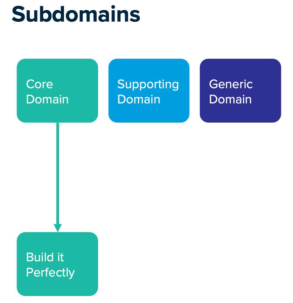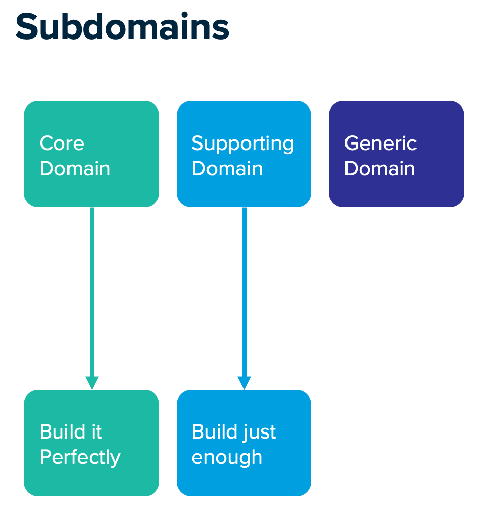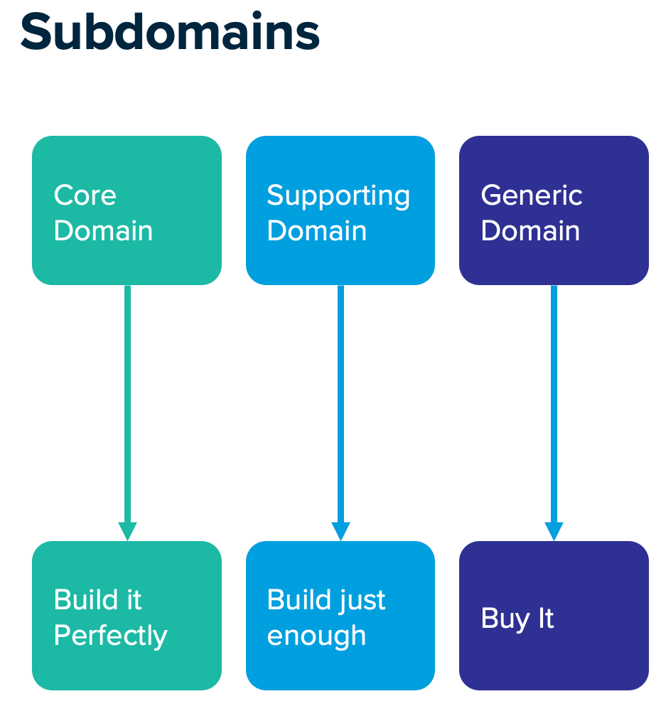 Generic Domain เป็นสิ่งที่มีทั่วไป หรือกระบวนการธุรกิจทั่วไป ที่เราไม่ควรสร้างขึ้นมาใหม่ เช่น SMTP server สำหรับส่ง email หรือ cloud platform สำหรับ run application ควรพิจารณาลงทุนในส่วน core domain เป็นหลัก