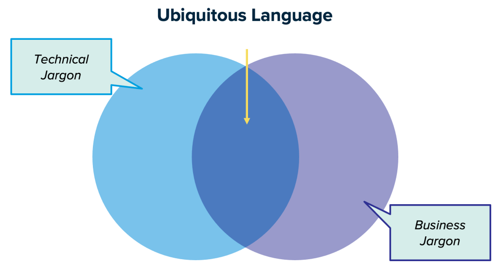 เป็นพัฒนาภาษาที่คุยทั่วไปภายในทีม เช่นคำย่อ เพื่อให้การสื่อสารได้ด้วยความรวดเร็ว และเข้าใจตรงกัน ซึ่งมีทั้งที่เชิงเทคนิค และในเชิงธุรกิจ ของบริบทและในขอบเขตของเรื่องนั้นๆ (Bounded context) แต่ต้องระวังเมื่อนำไปคุยสื่อสารในกลุ่มอื่นๆ เพราะอาจจะเกิดความไม่เข้าใจได้