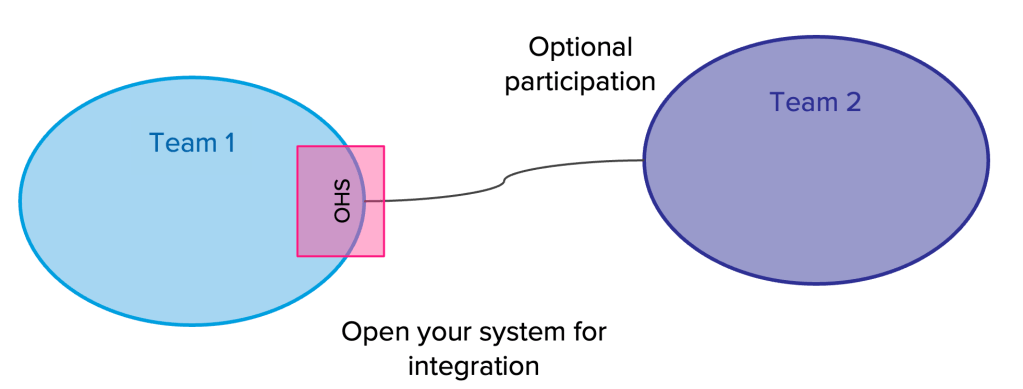 เป็นความสัมพันธ์ที่ทั้งสองทีมแบ่งส่วนใดส่วนหนึ่งเพื่อใช้ร่วมกัน ส่งผลให้เกิดการแยกส่วนร่วมนี้เป็นก้อนใหม่ (artifact) เพื่อการ deliver