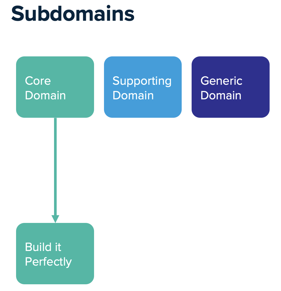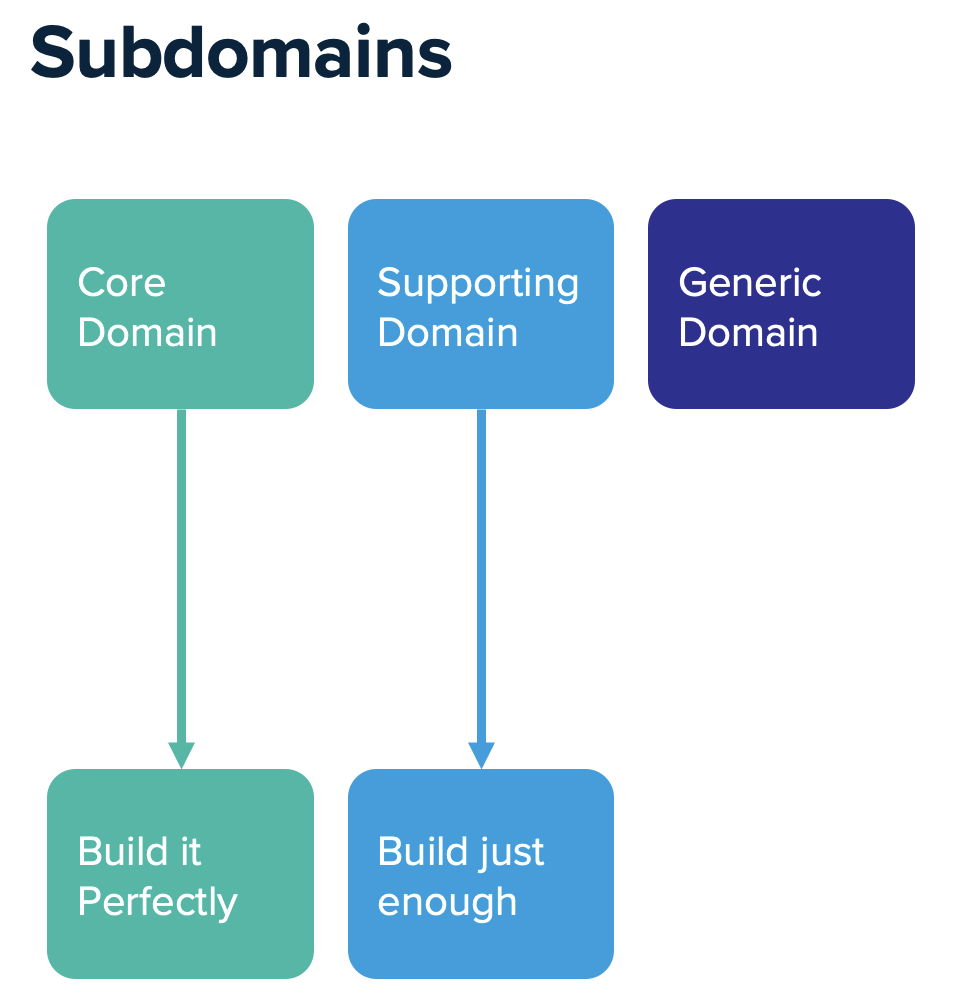 Generic Domain เป็นสิ่งที่มีทั่วไป หรือกระบวนการธุรกิจทั่วไป ที่เราไม่ควรสร้างขึ้นมาใหม่ เช่น SMTP server สำหรับส่ง email หรือ cloud platform สำหรับ run application ควรพิจารณาลงทุนในส่วน core domain เป็นหลัก