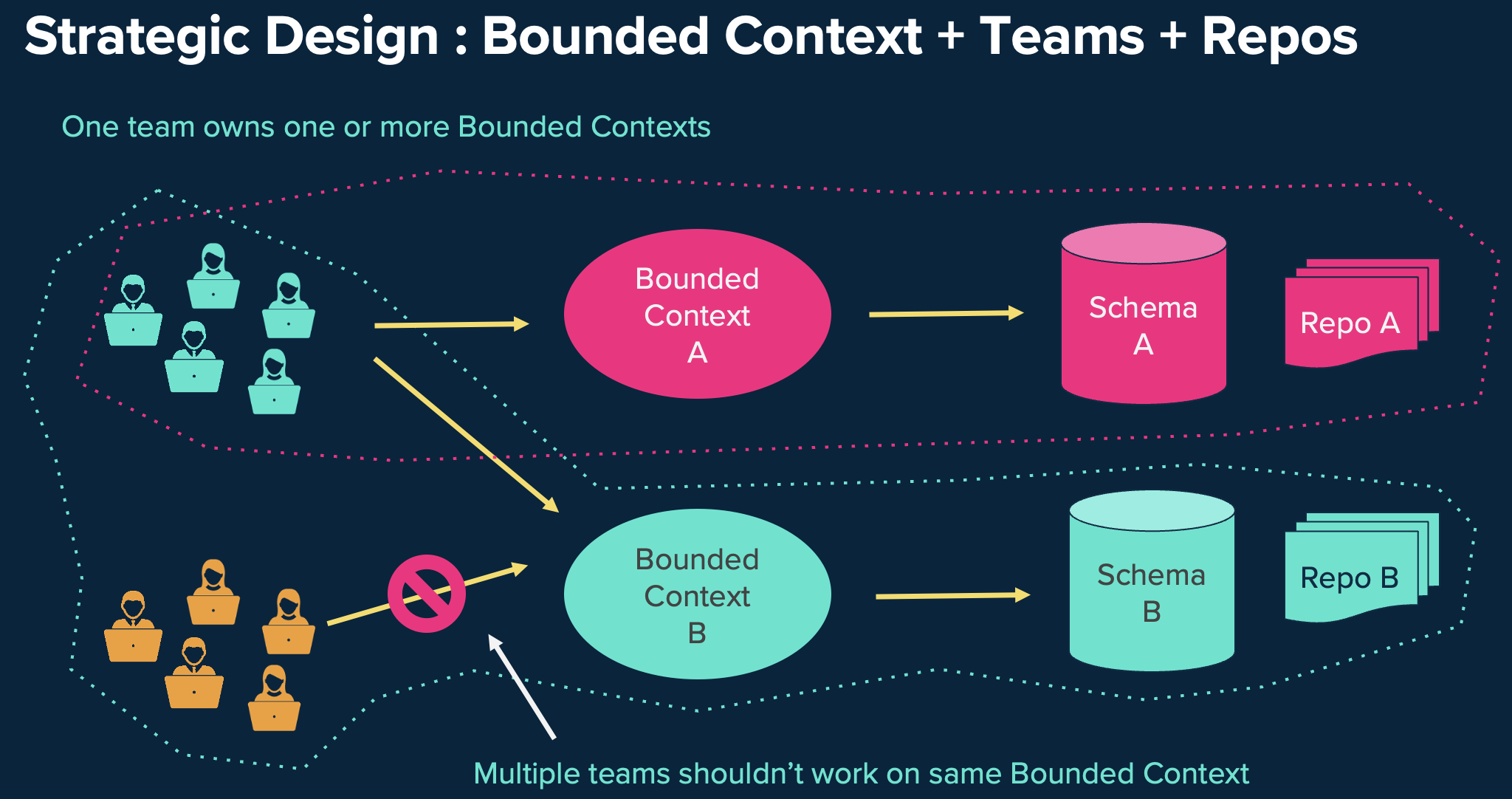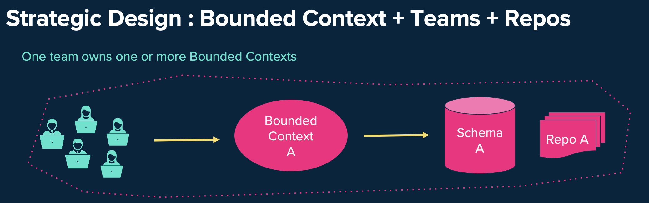 โดยที่ทีมนี้สามารถทำงานกับ Bounded context อื่นได้ แต่ไม่ควรให้หลายทีมทำงานบน Bounded Context เดียวกัน เพราะจะส่งปัญหาเรื่องความเข้าใจกับ Bounded Context ที่แตกต่างกันได้