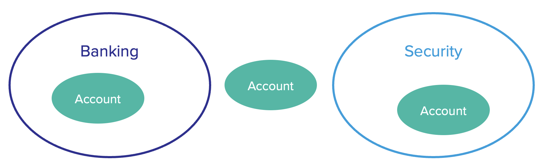 ทำไม Bounded context จึงสำคัญ ถ้าเราพิจารณาเรื่อง Account ในความหมายของ Account สำหรับ Banking ก็จะหมายถึงบัญชีธนาคาร ยอดเงินฝาก ดอกเบี้ย แต่ถ้าในมุมมอง Security จะหมายถึง User Login สิทธิการเข้าถึง service ต่างๆ ดังนี้การมีหลายทีมที่ทำเรื่องเดียวกัน สิ่งเดียวกันแต่อาจจะเป็นคนละอย่างกันได้