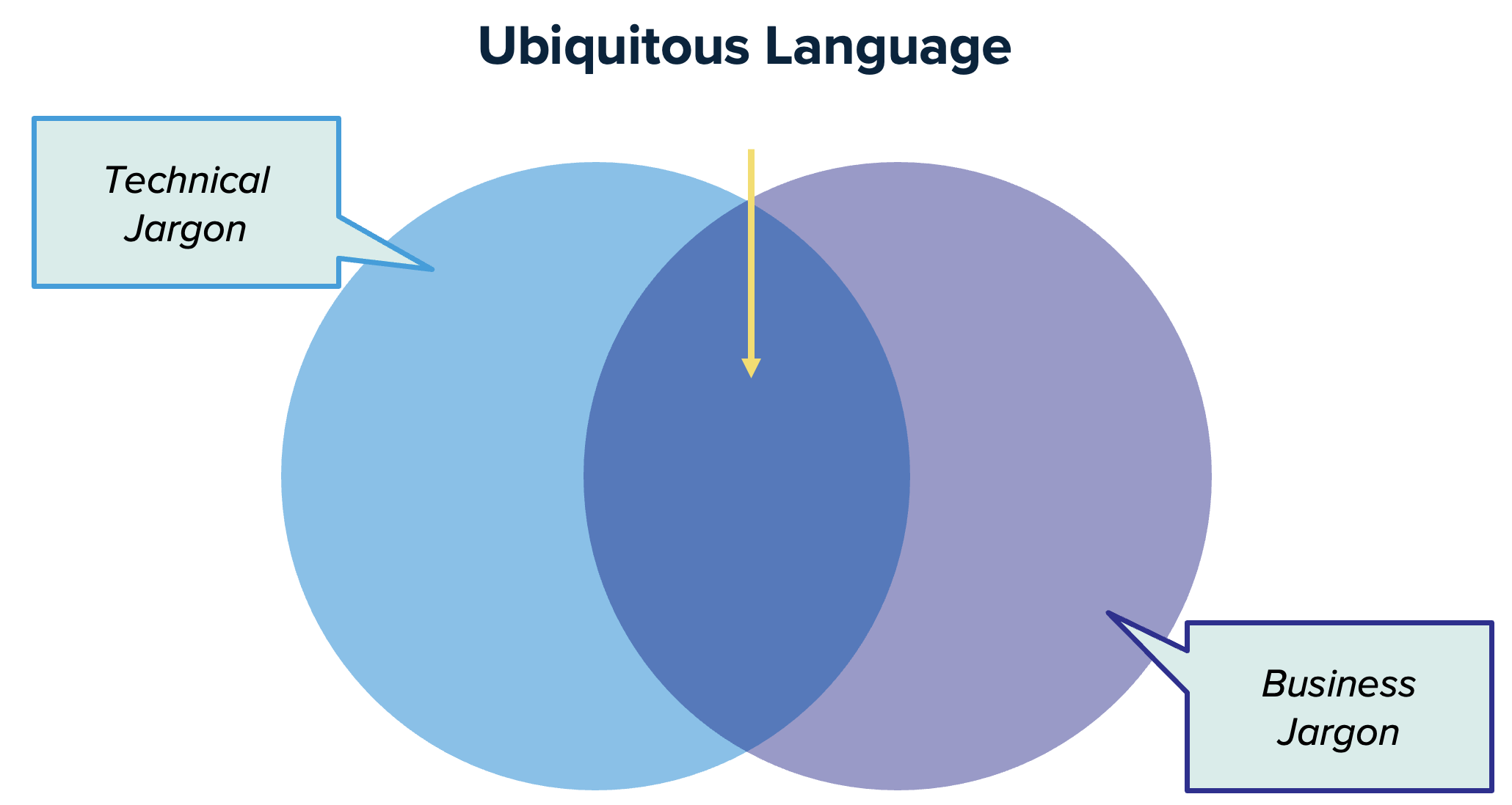 เป็นพัฒนาภาษาที่คุยทั่วไปภายในทีม เช่นคำย่อ เพื่อให้การสื่อสารได้ด้วยความรวดเร็ว และเข้าใจตรงกัน ซึ่งมีทั้งที่เชิงเทคนิค และในเชิงธุรกิจ ของบริบทและในขอบเขตของเรื่องนั้นๆ (Bounded context) แต่ต้องระวังเมื่อนำไปคุยสื่อสารในกลุ่มอื่นๆ เพราะอาจจะเกิดความไม่เข้าใจได้
