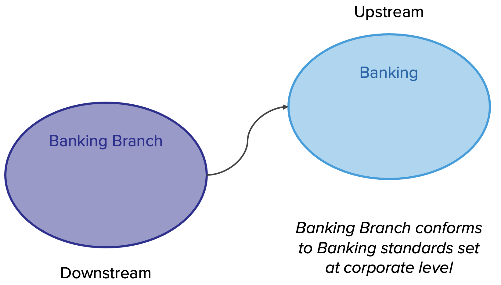 เป็นความคล้อยตาม (conform) ที่โมเดล upstream มีทุกอย่างที่ downstream ต้องการ โดยที่ upstream ไม่ได้สนใจ downstream
