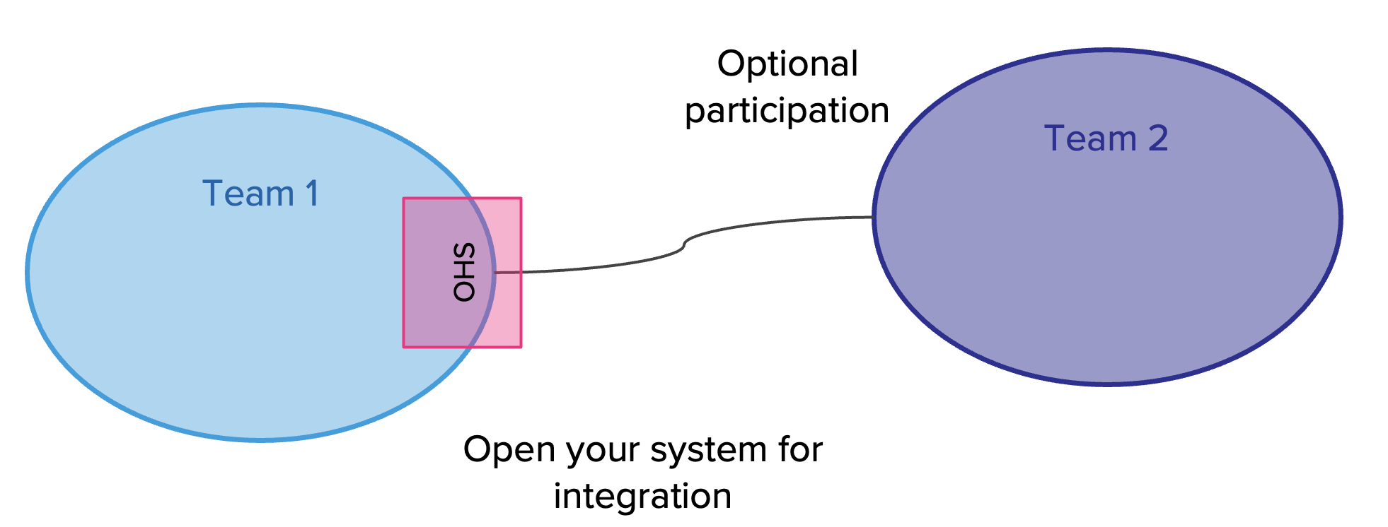 เป็นความสัมพันธ์ที่ทั้งสองทีมแบ่งส่วนใดส่วนหนึ่งเพื่อใช้ร่วมกัน ส่งผลให้เกิดการแยกส่วนร่วมนี้เป็นก้อนใหม่ (artifact) เพื่อการ deliver