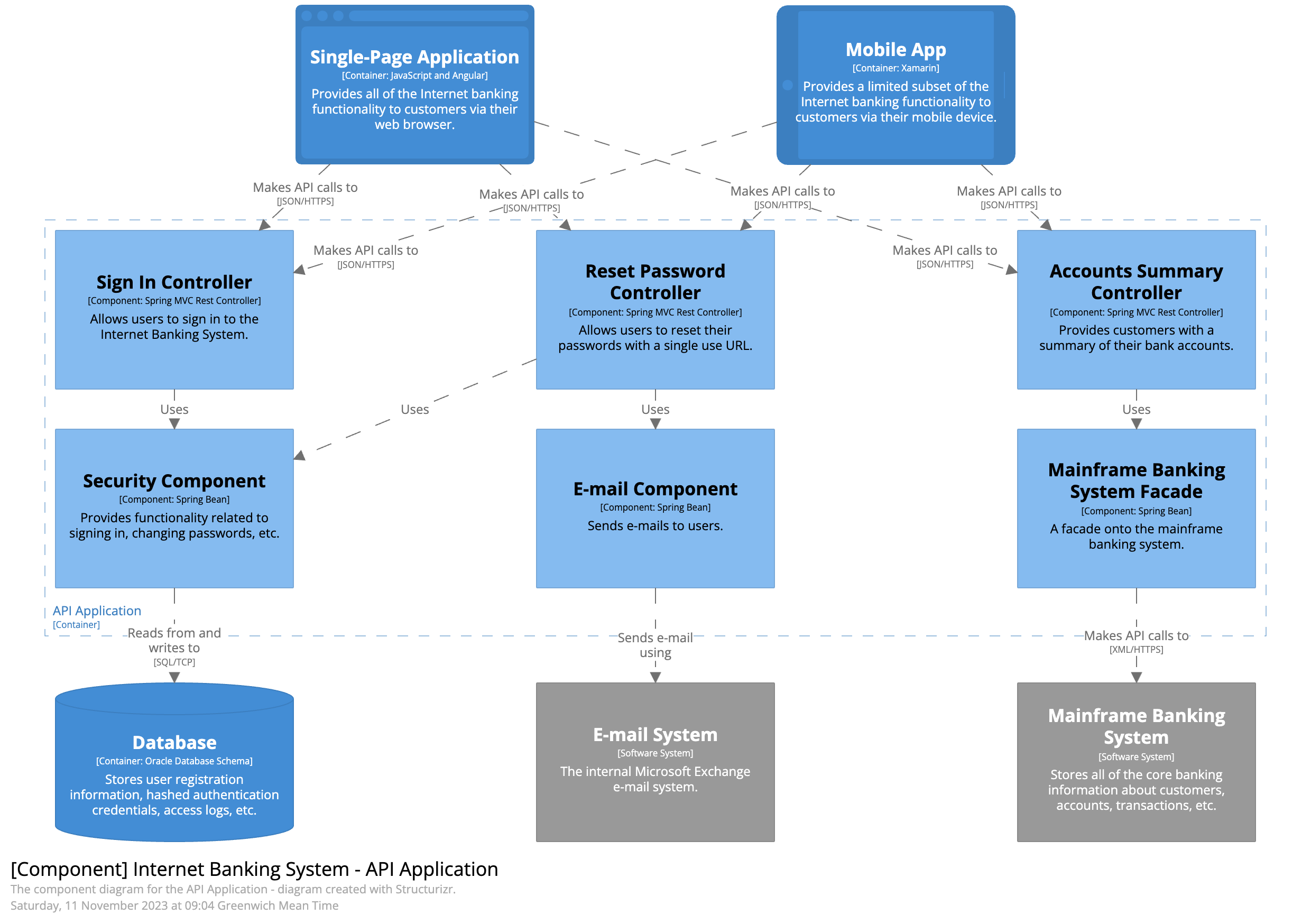 Code เป็น implementation detail ของ component โดยแสดงในรูปแบบ UML class diagram, entity relationship diagram ปกติ code diagram จะถูก generate จาก development tool