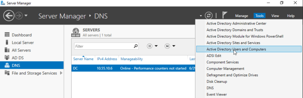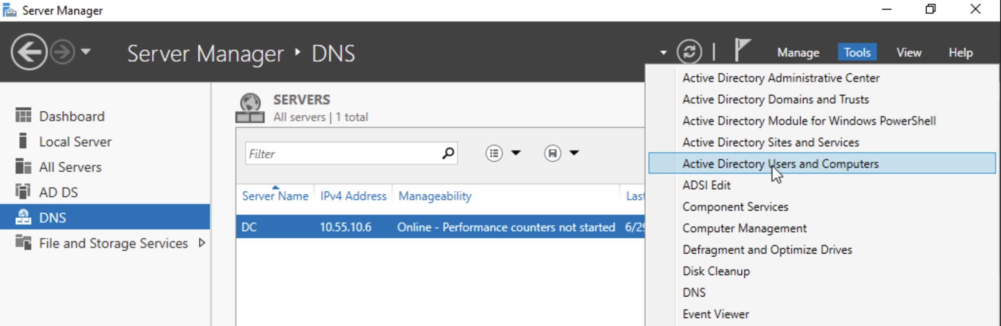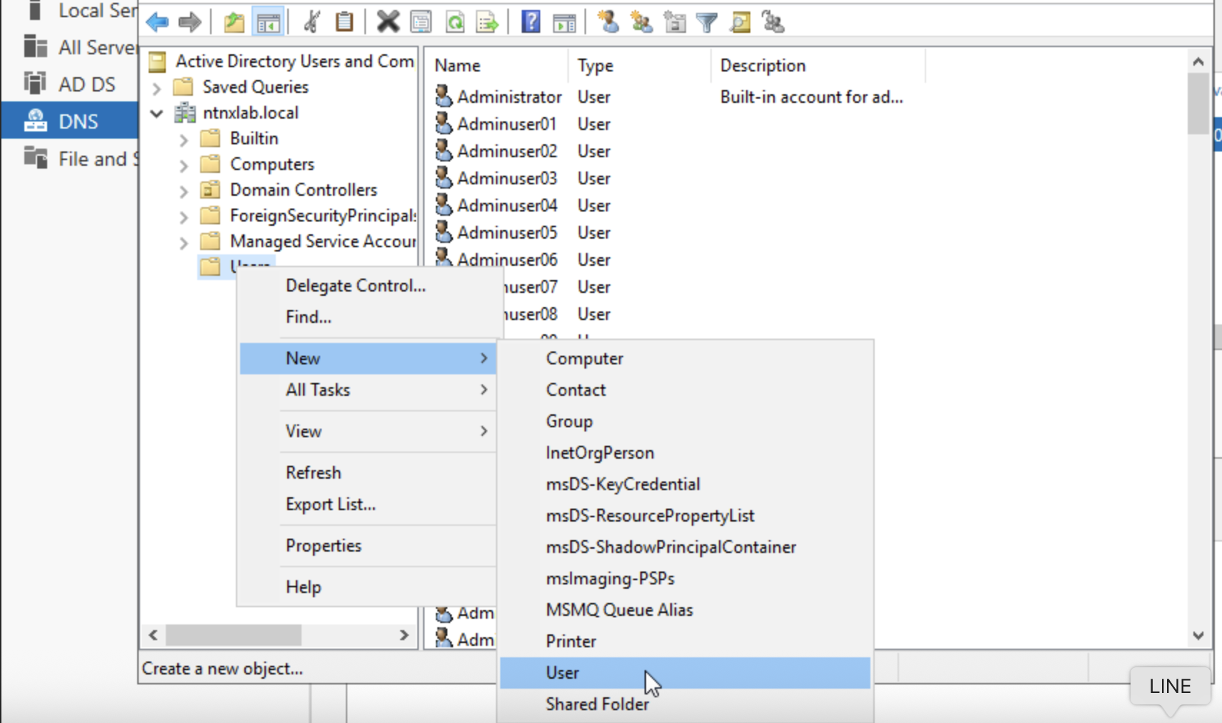 เตรียม nkp service user โดยเข้าไปที่เมนู Active Directory Users and Computers