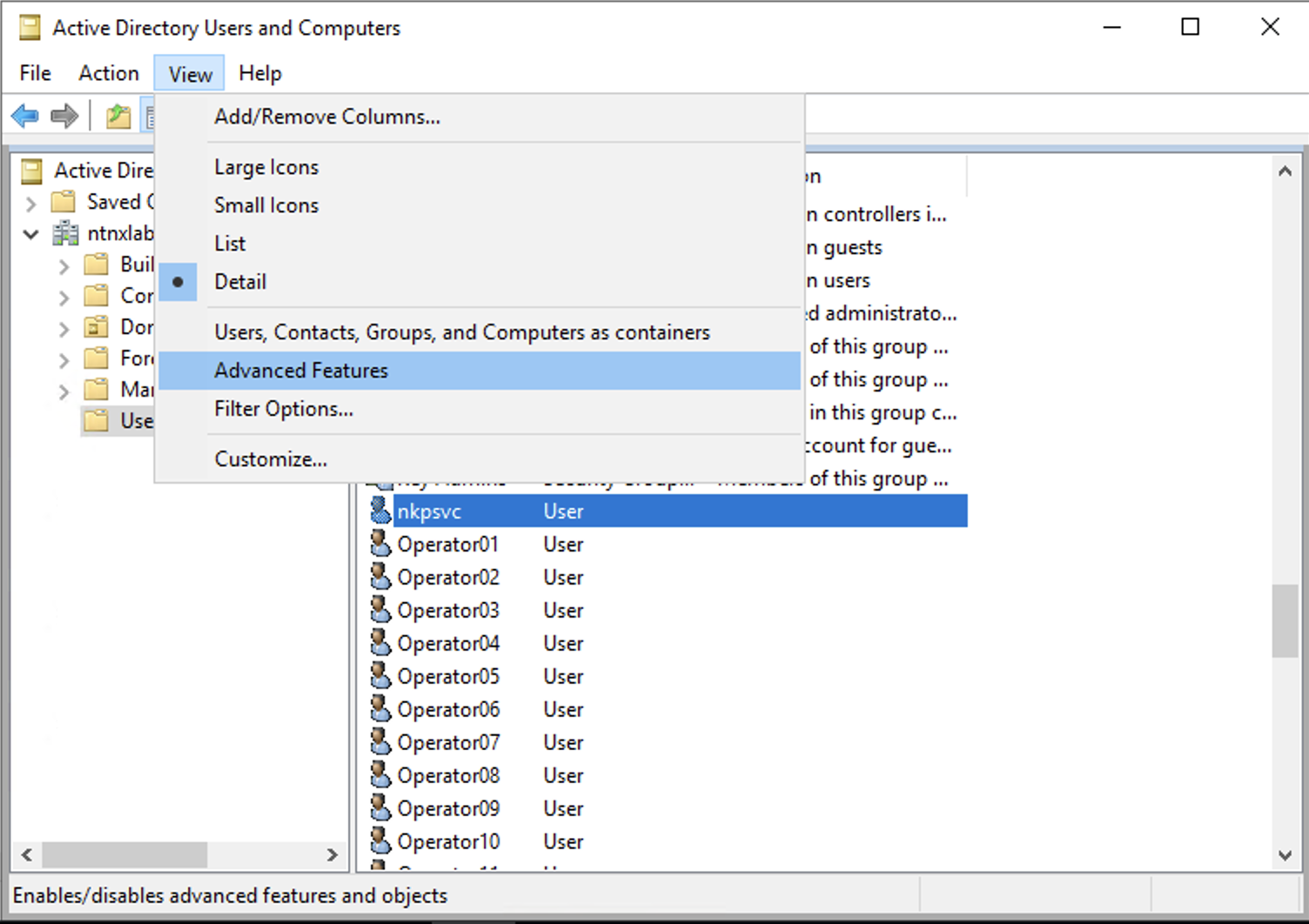 หลังจากสร้าง user ใหม่แล้วเก็บ DN ไว้สำหรับใช้ในการ setup ใน NKP โดย click ที่ user เลือก Advanced Feature