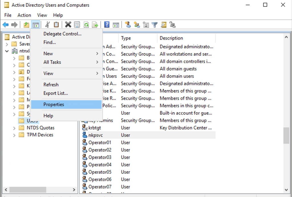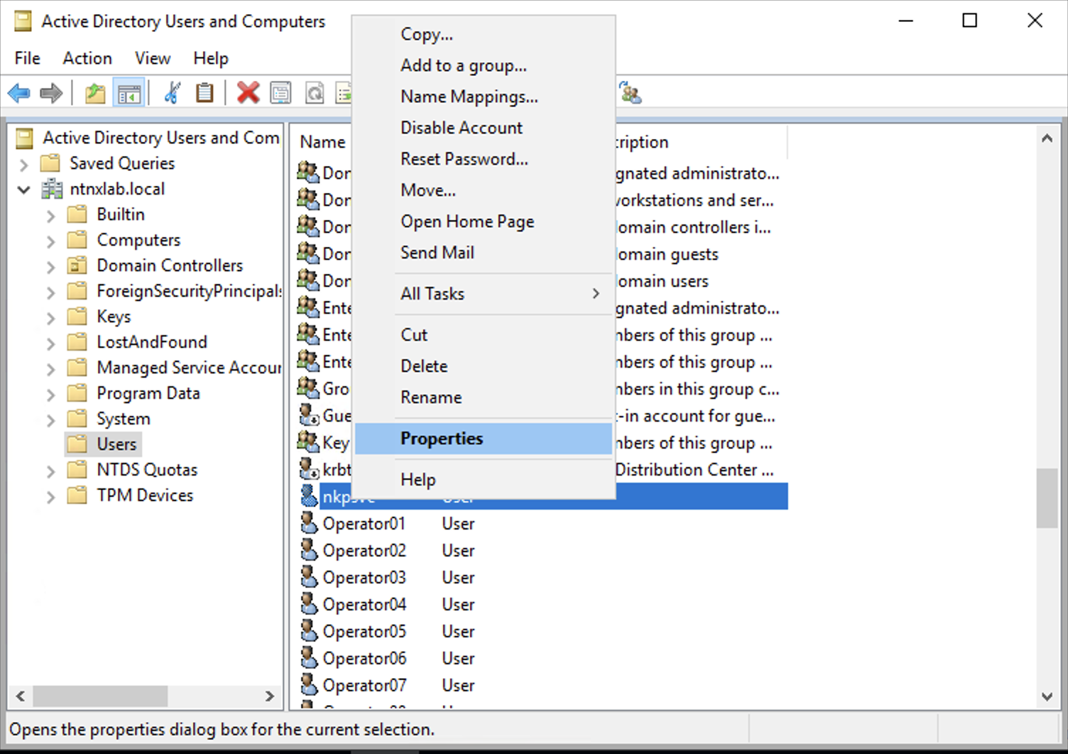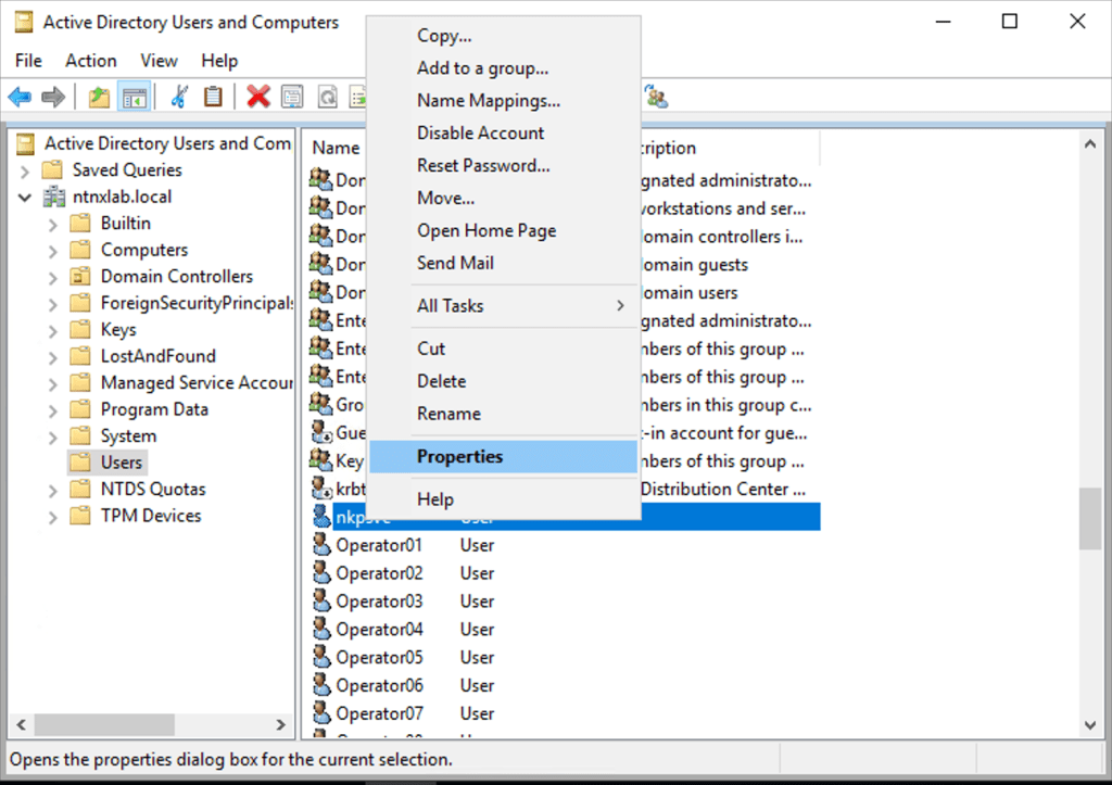 หาค่า User Search Base DN โดย click ที่ Users เลือก Properties