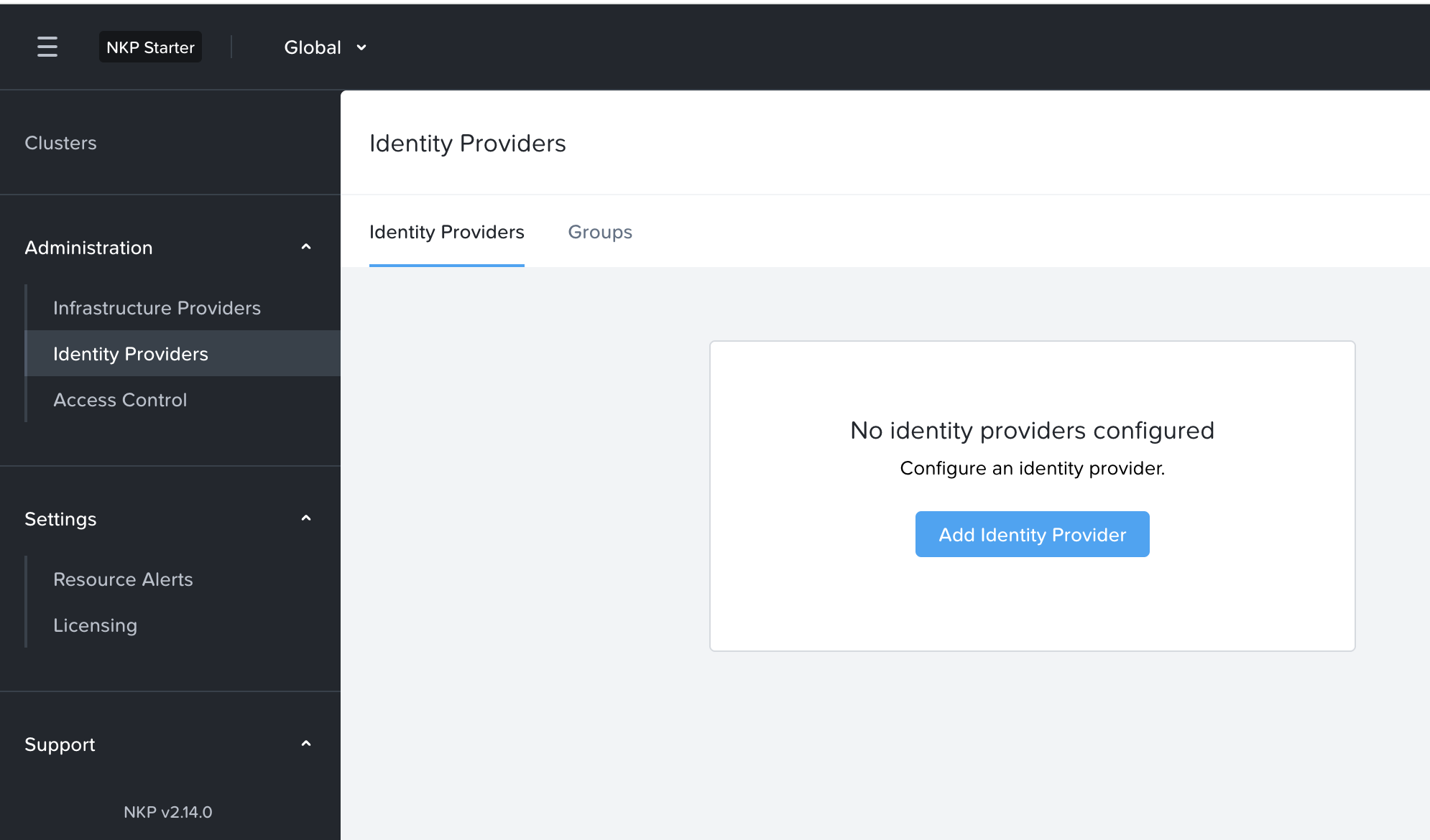 เปิดหน้า nkp-dashboard และเข้าไปที่เมนู Identity Providers