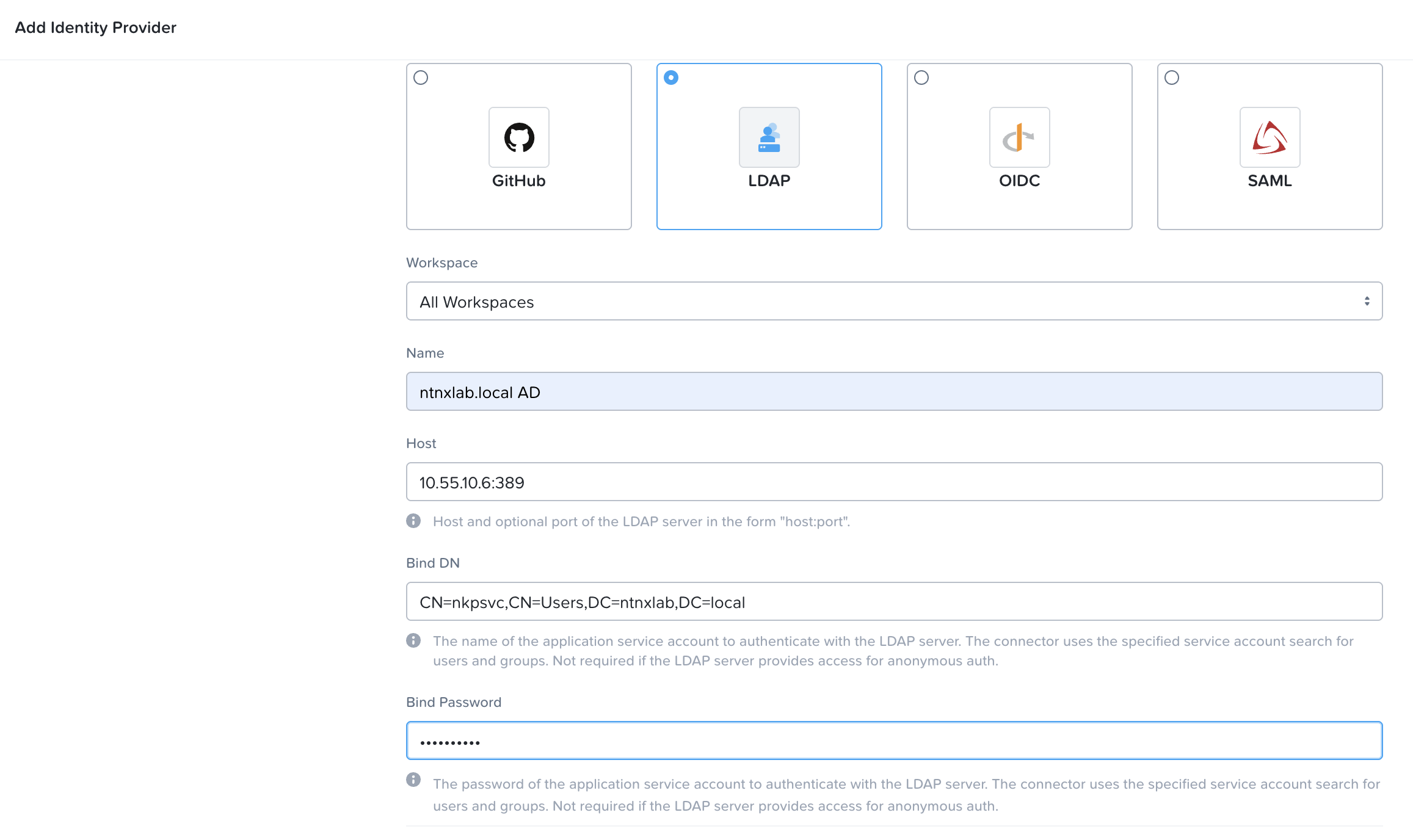 click Add Identity Provider และเลือก LDAP จากนั้นเลือก Workspace ที่ต้องการจะให้ Identity Provider นี้ถูกนำไปใช้ เลือก All Workspace หมายถึง Identity Provider นี้จะถูกใช้กับทุกๆ Workspace
