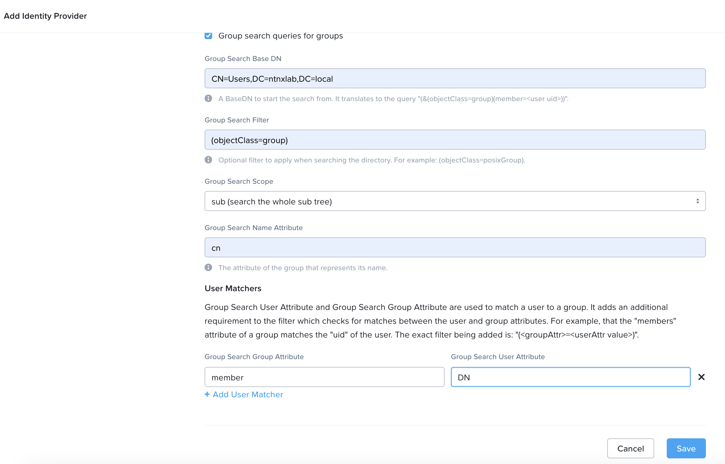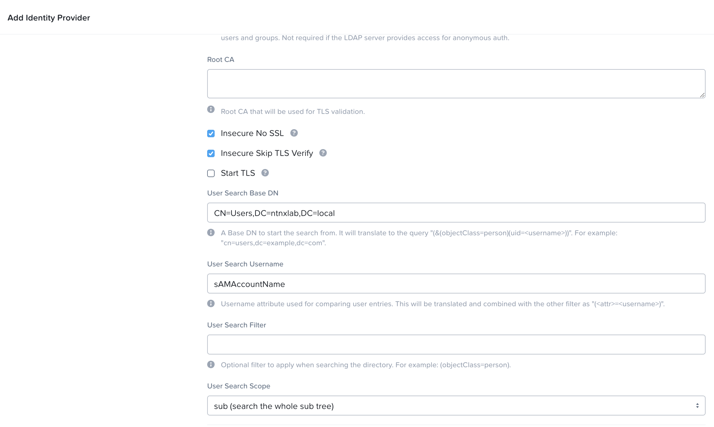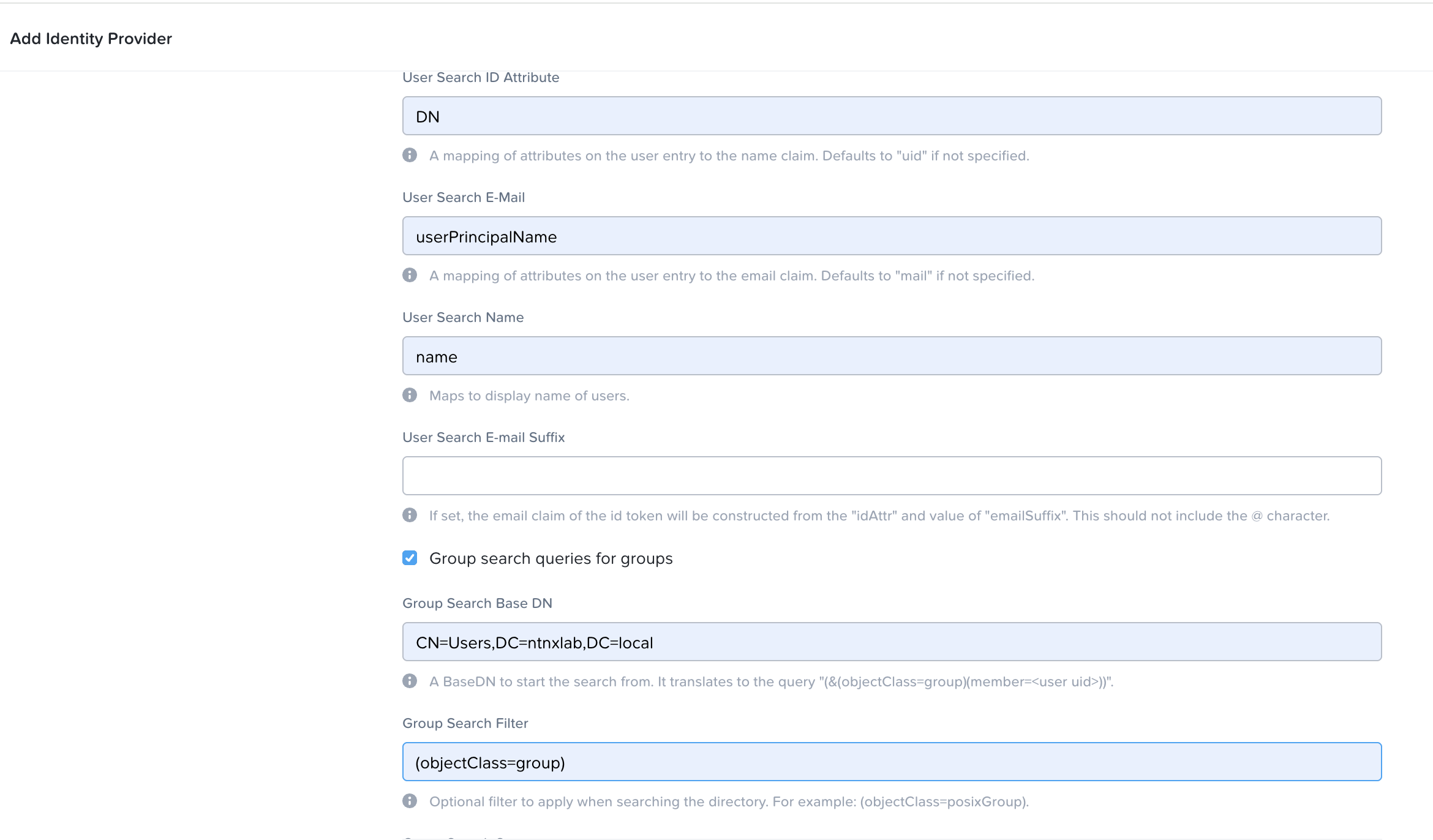 นำค่าที่ได้กรอกใน User Search Base DN และ User Search Username