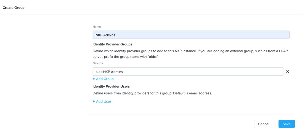 ทำการสร้าง group เพื่อ authentication เข้ามายัง nkp platform จากนั้นสร้าง user และ assign ให้เข้ามาเป็น member ของ group ที่สร้างขึ้น