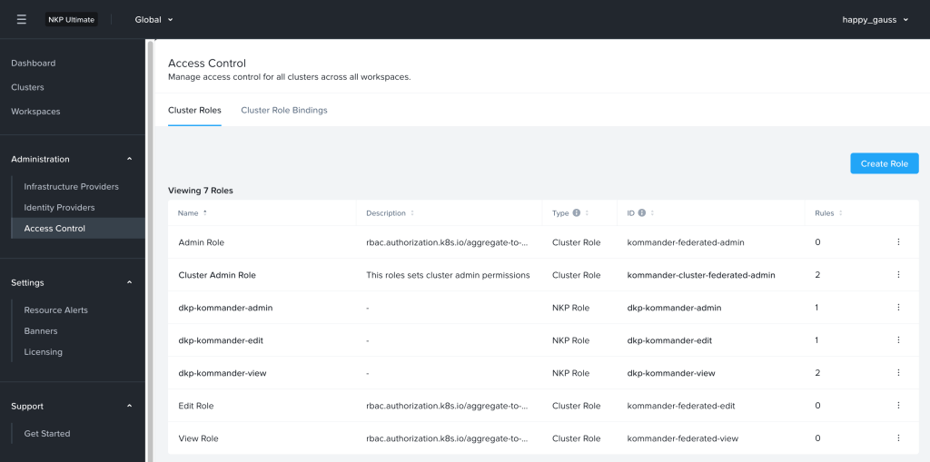 Workspace Admin มีสิทธิ์ Adminstrator สำหรับ NKP Workload Cluster โดยสามารถเข้าถึง NKP UI และเข้าถึง workspace ที่ถูก assign ให้เข้าถึงเท่านั้น โดยจะต้อง assign role “Workspace Admin Role” และ “Kommander Workspace Admin Role”