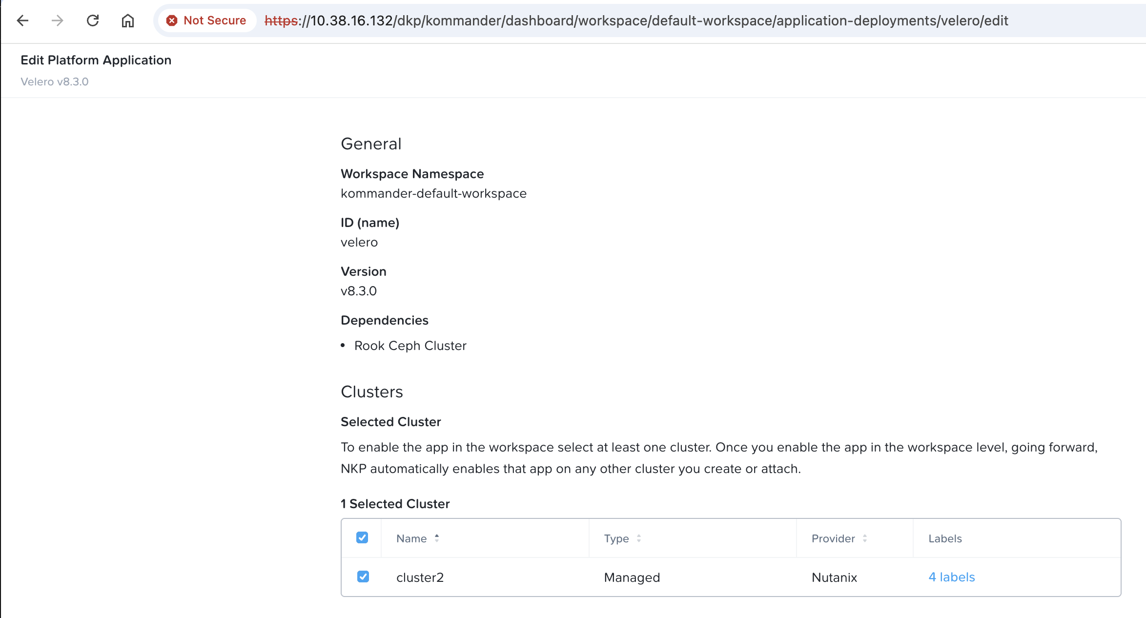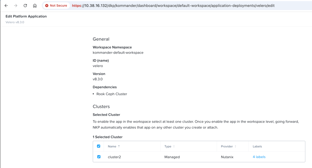 kommander velero-54db8ff6f8-vcvfw 1/1 Running 0 12m